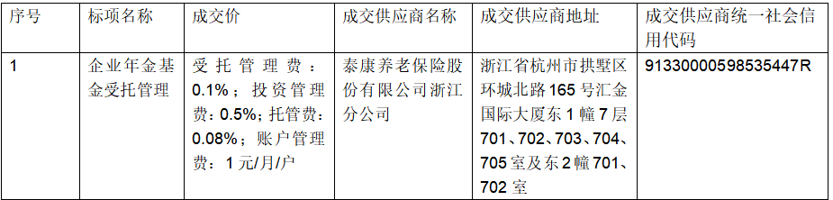二、项目名称:企业年金基金受托管理项目