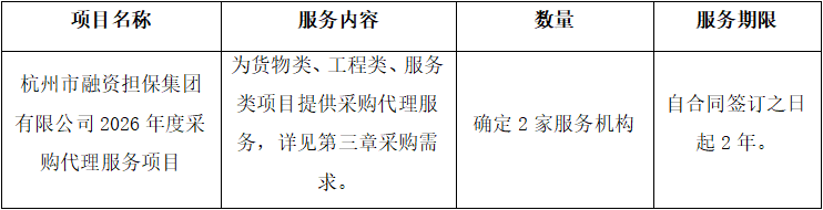 项目名称:杭州市融资担保集团有限公司2026年度采购代理服务项目