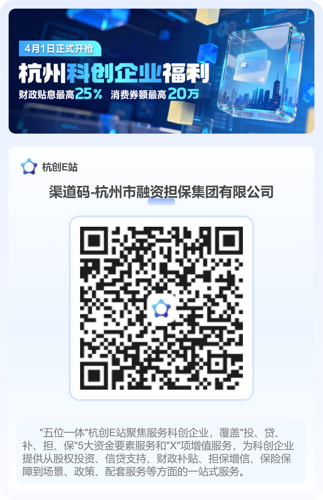 作为首批入驻杭创e站平台的担保机构,我们为科创企业提供一站式配套支持: