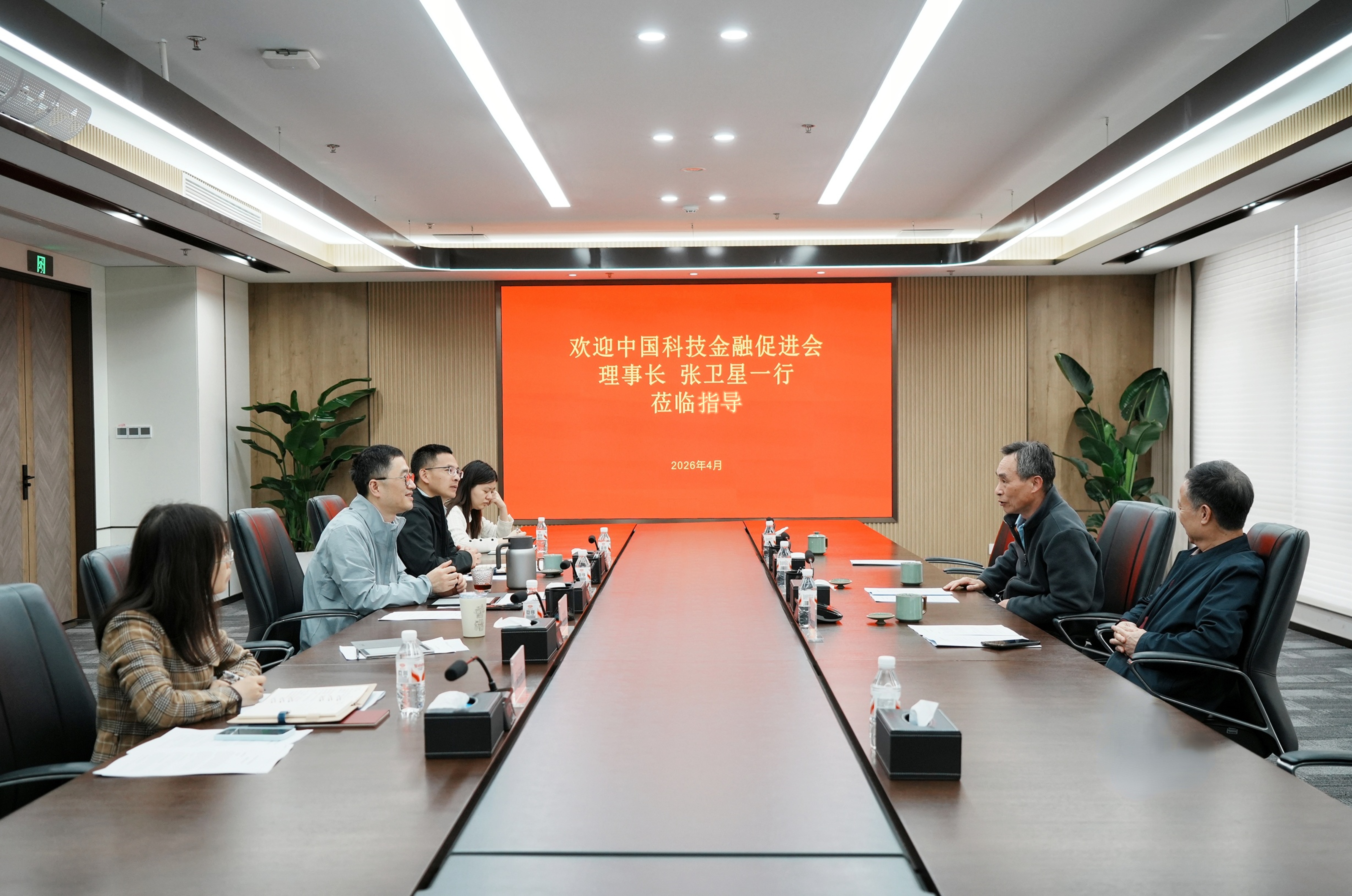 4月14日,中国科技金融促进会理事长、原科技部火炬中心党委书记张卫星一行到杭州融担集团调研。杭州融担集团董事长、总经理王强,副总经理徐岳军参加座谈。